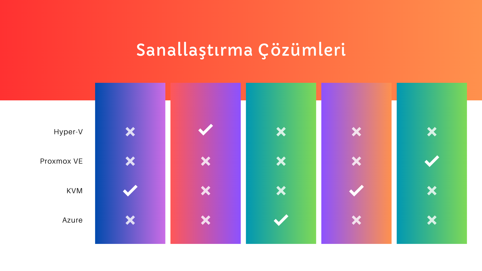 Özellikler MIcrosoft Hyper-V KVM Docker ve Kubernetes Proxmox VE Azure HCI